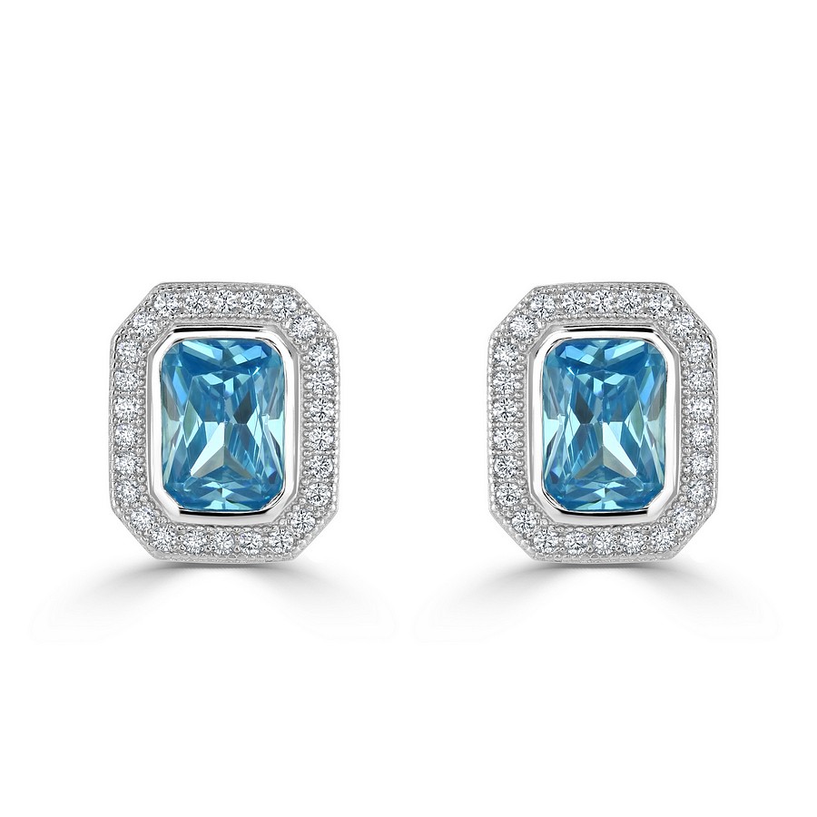 Elegant "Radiant Cut Halo" Simulated Blue Topaz and the best Cubic Zirconia Gems..