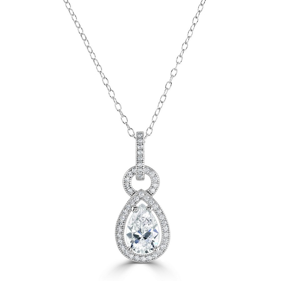 Elegant Pear shape Drop "Halo" CZ Pendant