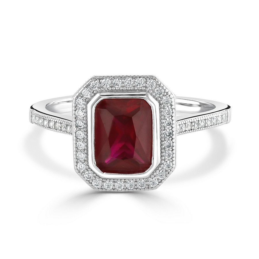 Stunning Emerald cut Simulated Ruby ring set with the best Cubic Zirconia Gems