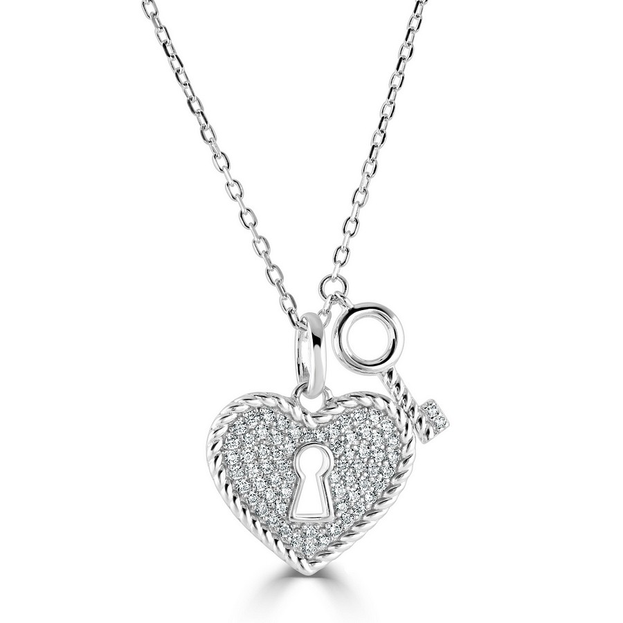Heart Shape "Lock & Key" CZ Pendant