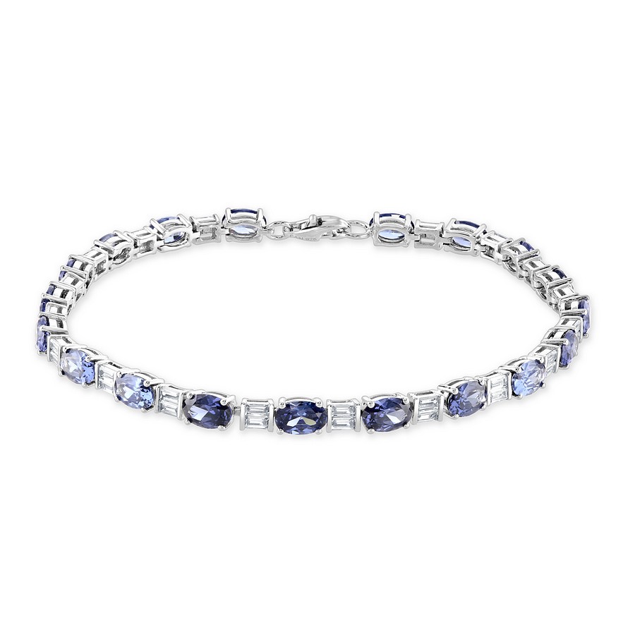 Stunning Oval & Baguette "Tennis Style" Bracelet set with the finest Simulated Tanzanite and the best Cubic Zirconia Gems.