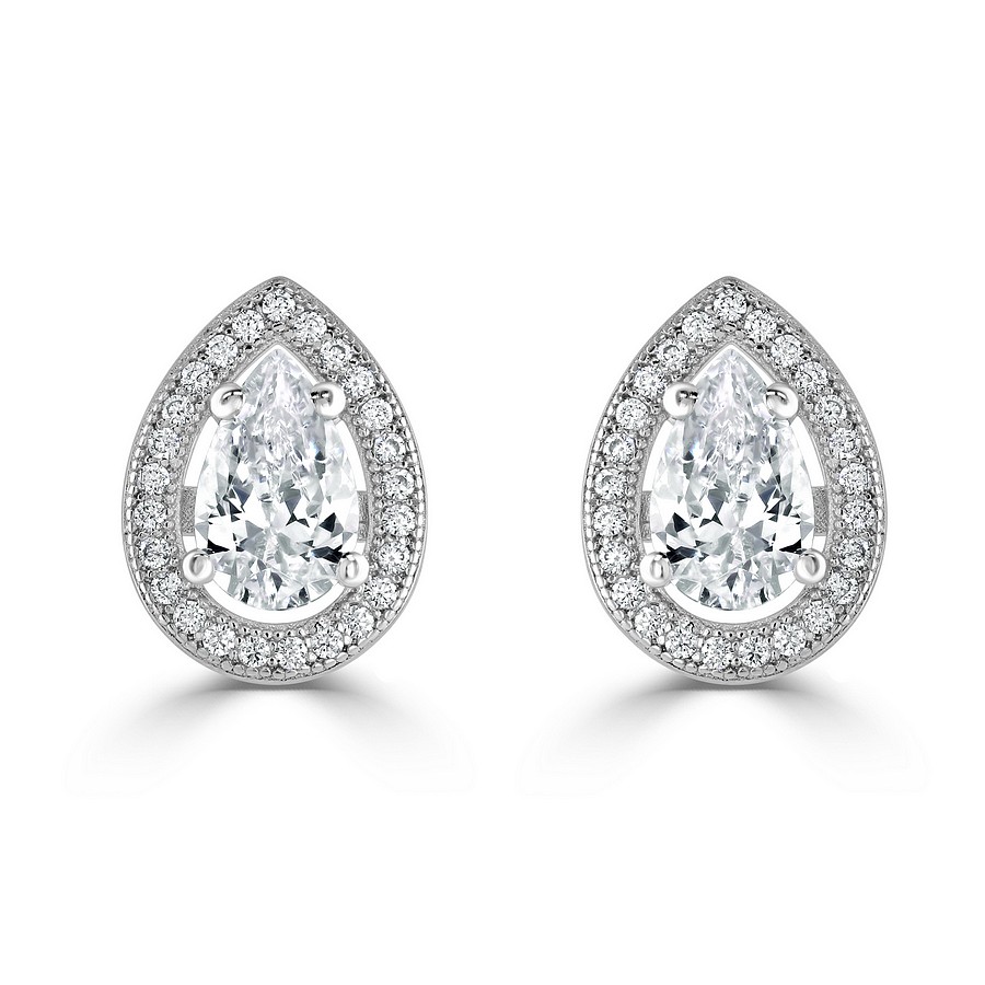 Pear shape "Halo" Expression CZ earrings , Pear Shaped Halo CZ Earrings , Pear Shaped Collection