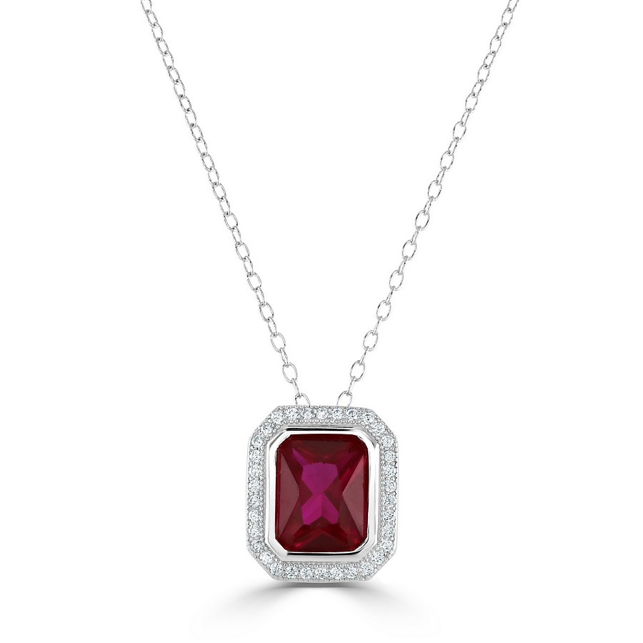Radiant Cut Special Pendant set with a beautiful Simulated Ruby and the best Cubic Zirconia Gems.Silver chain included in the price!