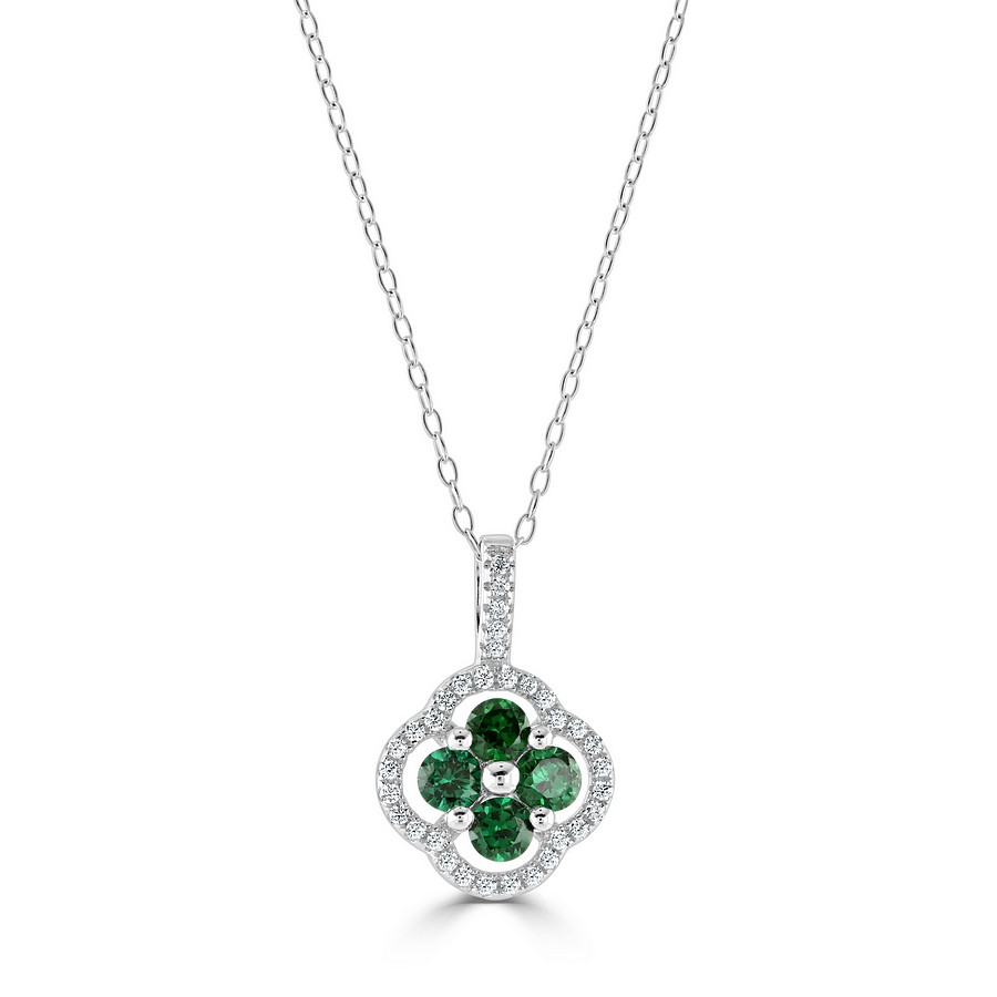 Stunning "Floral Cluster" Pendant set with the finest Simulated Emeralds and the best Cubic Zirconia Gems. Silver chain included in the price!